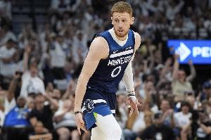 在西決的5場比賽中,森林狼射手迪文岑佐在外線的進攻效率很高,他場均出戰(zhàn)23.8分鐘,得到10分2.8籃板3助攻0.8搶斷0.2蓋帽,投籃命中率43.6%,三分命中率43.8%,罰球命中率100%。