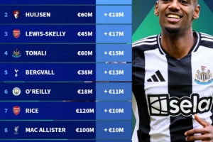 體育資訊5月30日訊 德轉(zhuǎn)今日更新了英超球員身價(jià),并盤(pán)點(diǎn)了此次更新身價(jià)漲幅榜,其中伊薩克居首,具體如下: