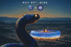 意甲官方社媒發(fā)布了為此役制作的海報(bào),藍(lán)蛇以及本場(chǎng)決賽舉辦地安聯(lián)球場(chǎng)、歐冠獎(jiǎng)杯出鏡。