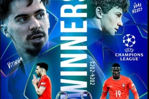 葡萄牙國(guó)家隊(duì)官推也曬出巴黎隊(duì)內(nèi)4名葡萄牙球員海報(bào),并為他們送上祝賀。4名球員分別是維蒂尼亞、內(nèi)維斯、貢薩洛-拉莫斯、努諾-門德斯。
