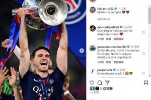 體育資訊6月1日訊 歐冠決賽,法比安-魯伊斯首發(fā)出戰(zhàn),幫助巴黎5-0國米,捧起冠軍獎杯。