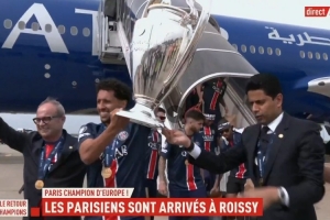 體育資訊6月1日訊 今天凌晨奪得隊(duì)史首座歐冠冠軍后,巴黎圣日耳曼全隊(duì)現(xiàn)在回到了法國(guó)首都。