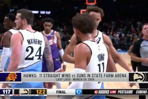 據(jù)統(tǒng)計(jì),老鷹在主場對(duì)太陽已經(jīng)豪取11連勝,上次在主場輸太陽還是在2014年。