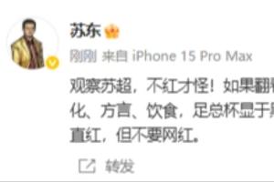 蘇東:“觀察蘇超,不紅才怪!如果翻看一下上世紀(jì)初的英國(guó)足總杯,何其相似!歷史、文化、方言、飲食,足總杯顯于黑板,蘇超顯于大屏。這才是足球之根,希望蘇超一直紅,但不要網(wǎng)紅。 ???”