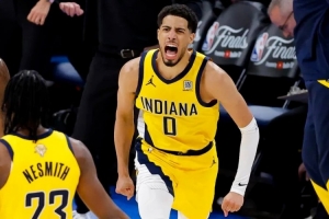 而整整2分38秒的比賽時(shí)間只摸了兩次球的哈利伯頓,偏偏又是在最后一個(gè)決勝回合,像是雷吉-米勒附體一般,毅然決然地從托平手里要過皮球,頂著防守專家華萊士的纏繞推進(jìn)到前場,用自己最不擅長、最為別扭的運(yùn)球急停中投,殺死了比賽,鎖住了雷霆主場球迷原本高聲歡慶的咽喉。