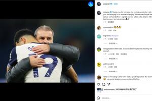 體育資訊6月8日訊 熱刺前鋒索蘭克在個(gè)人社媒曬出一張與前主帥波斯特科格魯?shù)膿肀Ш嫌?,為其送上告別。