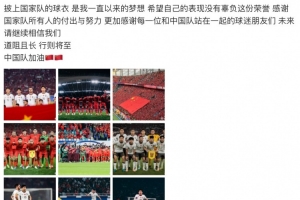 披上國家隊的球衣,是我一直以來的夢想,希望自己的表現(xiàn)沒有辜負(fù)這份榮譽,感謝國家隊所有人的付出與努力,更加感謝每一位和中國隊站在一起的球迷朋友們。未來,請繼續(xù)相信我們。