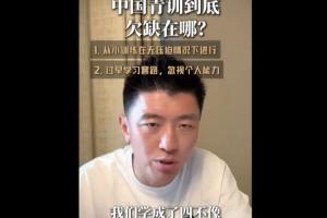 雖然聽起來中國的青訓(xùn)圍繞著比賽會有很多針對性的套路,訓(xùn)練也會有練習(xí),整體和個人的聽起來是個非常完美的體系,但是我們回想起來,我們學(xué)成了四不像。個人能力,沒有日本球員那么精細(xì),身體條件,又沒有歐洲球員那么好,比賽能力,又沒有西班牙球員那么強(qiáng),所以我個人認(rèn)為現(xiàn)在的國內(nèi)青訓(xùn)應(yīng)該先完善個人能力等。