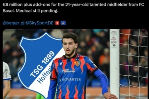 報道稱霍芬海姆將為這位21歲天才中場球員支付的轉(zhuǎn)會費為800萬歐元,外加附加獎金。他即將進(jìn)行加盟前的體檢。