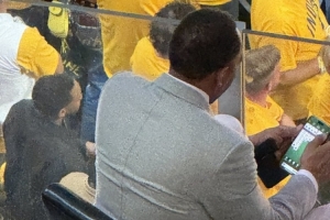 體育資訊6月14日訊 NBA總決賽G4,雷霆111-104戰(zhàn)勝步行者。比賽過程中,A-史密斯在觀眾席上玩起了紙牌游戲。