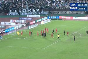 體育資訊06月14日訊 海港vs浙江補時第1分鐘,弗蘭克在角球進攻中頭球破門。