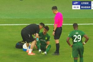 體育資訊06月17日訊 國安vs西海岸比賽第7分鐘,林良銘無對抗下倒地受傷,被張?jiān)磽Q下。
