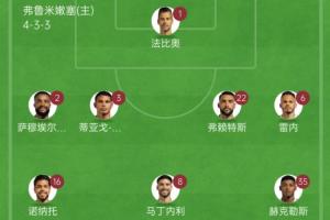 弗魯米嫩塞替補(bǔ):27-皮塔盧加、98-厄德、4-伊納西奧、12-富恩特斯、23-古加、26-馬諾埃爾、29-蒂亞戈-桑托斯、5-伯納爾、10-甘索、18-萊茲卡諾、45-利馬、11-克諾、14-卡諾、77-保羅-巴亞、90-塞爾納