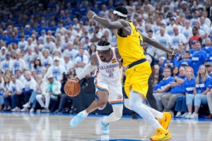 G5這輪系列賽天王山,很最接近我們對(duì)類似雷霆打法和類似步行者打法球隊(duì)的刻板印象。前者硬解更強(qiáng),個(gè)人能力輕松創(chuàng)造機(jī)會(huì)。后者勝在組織能力和錯(cuò)位進(jìn)攻。當(dāng)比賽去到高端局時(shí),硬解已經(jīng)成了一種球迷信仰的解決問(wèn)題手段。反過(guò)來(lái),錯(cuò)位進(jìn)攻可能會(huì)找不到錯(cuò)位。