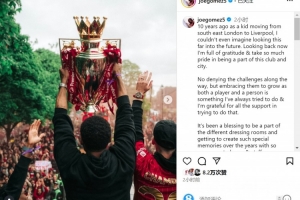 體育資訊6月20日訊 利物浦后衛(wèi)喬-戈麥斯更新社媒動態(tài),紀念加盟利物浦10周年。