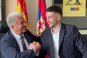 巴薩支付2634萬(wàn)歐解約金簽下西班牙人門(mén)將霍安-加西亞,球員抵達(dá)諾坎普辦公室簽署合同,巴薩官方社媒曬出簽約儀式的視頻,歡迎霍安-加西亞加盟球隊(duì),球員在簽約時(shí)露出燦爛笑容。