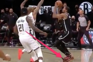 末節(jié)最后時(shí)刻,籃網(wǎng)以107-109落后,杜蘭特接球轉(zhuǎn)身起跳面對(duì)PJ-塔克防守出手遠(yuǎn)投命中,但他的腳踩到了三分線,因此這一球被算作兩分球,比賽進(jìn)入加時(shí)。加時(shí)賽,籃網(wǎng)僅得2分最終輸球。