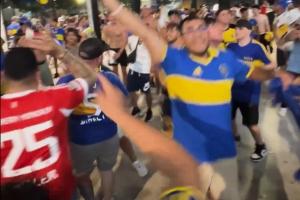 世俱杯小組賽拜仁2-1博卡青年,賽后博卡球迷與拜仁球迷一起慶祝,兩隊(duì)球迷友好互動