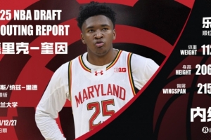 德里克-奎因身高(裸足)2米06,體重112公斤,臂展2米15。2024-25賽季(大一),奎因出戰(zhàn)36場,場均30.4分鐘,得到16.5分9籃板1.9助攻1.1蓋帽1.1搶斷,投籃命中率52.6%,三分命中率20%,罰球命中率76.6%。