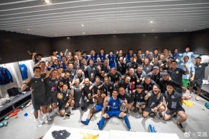 本場比賽吳曦大放異彩,上演了助攻帽子戲法。比賽結(jié)束后,他在社媒曬出全隊更衣室的慶祝合影并配文“晉級下一輪”。