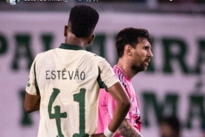 埃斯特旺半場(chǎng)結(jié)束時(shí)與梅西互換球衣,賽后他在社交媒體上曬出與梅西的賽場(chǎng)合照,分享與偶像同場(chǎng)競(jìng)技的喜悅之情。