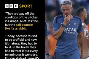 恩里克說:“這里的球場條件與歐洲的球場差得很遠(yuǎn)。差別很大,雖然還算可以,但球在場地上彈跳得像兔子一樣。