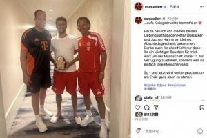 體育資訊6月26日訊 目前穆勒正跟隨拜仁征戰(zhàn)世俱杯,這將是穆勒為拜仁效力的最后時(shí)光。穆勒更新社交媒體曬出兩位骨科醫(yī)生贈(zèng)送的告別小禮物,并感謝他們?yōu)樽约鹤龅囊磺小?/p>