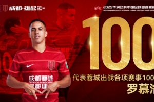 體育資訊6月27日訊 羅慕洛更新社媒,紀(jì)念代表成都蓉城出戰(zhàn)100場(chǎng)比賽。