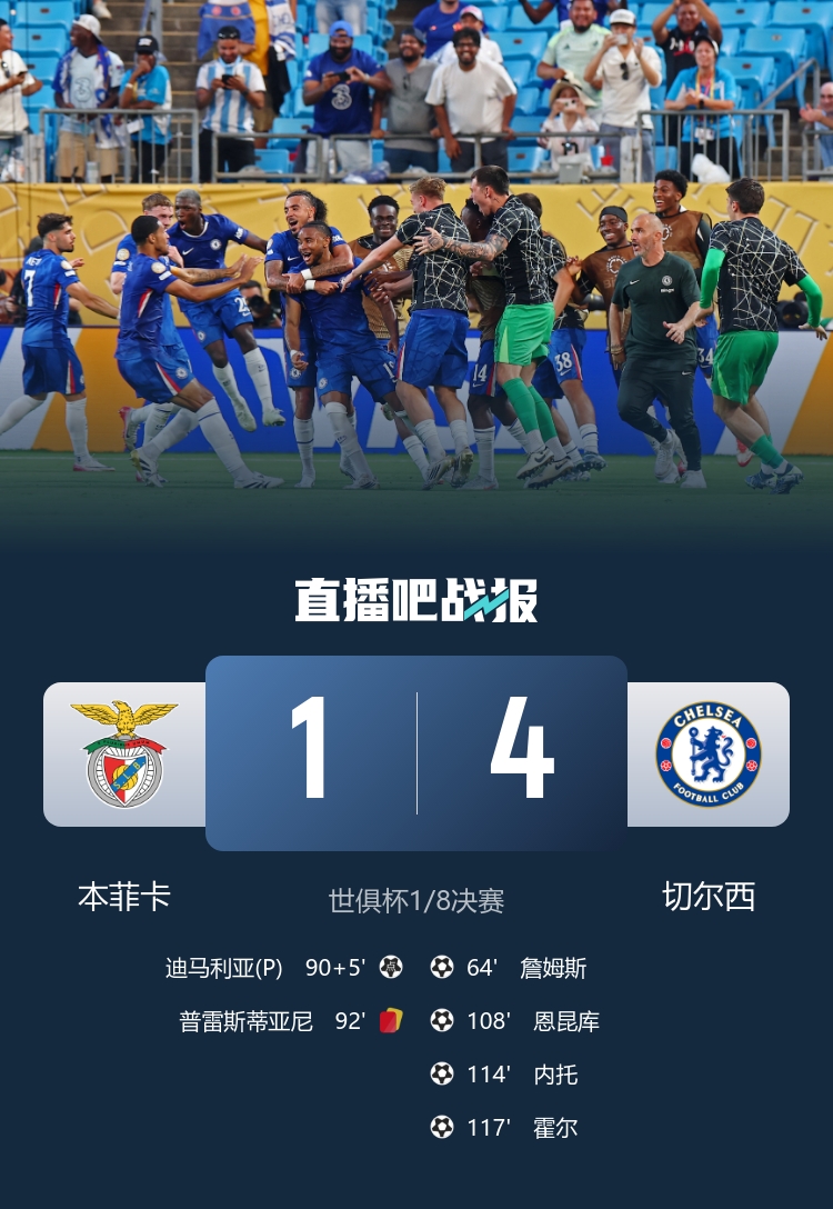 體育資訊6月29日訊 在世俱杯1/8決賽,切爾西經(jīng)歷加時4-1擊敗本菲卡。