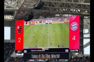 據(jù)球場現(xiàn)場大屏幕顯示,該場比賽的上座人數(shù)達(dá)到60914人。