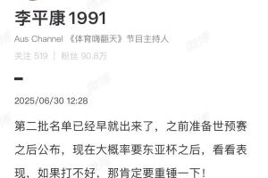 媒體人李平康透露,足壇掃黑第二批名單早就出來(lái)了,之前準(zhǔn)備世預(yù)賽之后公布,現(xiàn)在大概率要東亞杯之后,看看表現(xiàn),如果打不好,那肯定要重錘一下! ???