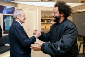 據皇馬俱樂部官方消息,本場比賽,球隊傳奇左后衛(wèi)馬塞洛來到現場觀戰(zhàn),并在賽后前往更衣室,向主席弗洛倫蒂諾以及主帥安切洛蒂致意,并向球員們表示祝賀。
