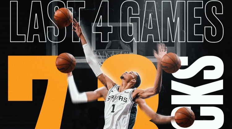 過去四場比賽文班蓋帽數(shù)分別是:7個(gè)、4個(gè)、10個(gè)、8個(gè),場均7.3次!