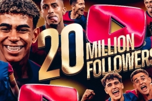 巴薩官方社媒曬出海報(bào),確認(rèn)俱樂(lè)部YouTube賬號(hào)訂閱量突破2000萬(wàn),成為世界上首家達(dá)成這一里程碑的體育俱樂(lè)部。