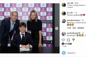 達(dá)米安-切赫社媒曬出與富勒姆的簽約照片,他的父母出席簽約儀式,達(dá)米安-切赫配文:“永遠(yuǎn)感恩?!?/p>