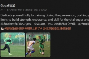 體育資訊1月17日訊?國安外援古加更新社媒,曬出自己隨隊備戰(zhàn)新賽季的照片。