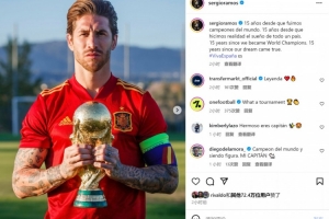 體育資訊7月12日訊 拉莫斯更新社媒動態(tài),紀(jì)念2010年隨西班牙隊(duì)問鼎世界杯。