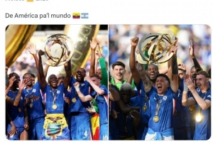 南美足聯(lián)社媒曬出恩佐、凱塞多舉杯的照片,配文:“凱塞多、恩佐,從美洲走向世界。”