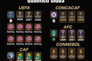 下一屆世俱杯將在2029年舉辦,雖然舉辦地還未確定,但已經(jīng)有4支球隊鎖定了參賽名額,分別是: