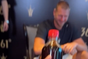 在今天的活動(dòng)中,有球迷向約老師遞可樂(lè),不過(guò)被約老師笑著拒絕。