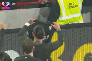 體育資訊01月19日訊 利物浦vs布倫特福德補(bǔ)時第一分鐘,阿諾德助攻努涅斯破門,進(jìn)球后努涅斯脫衣慶祝,隨后又舉起自己的球衣向看臺展示。