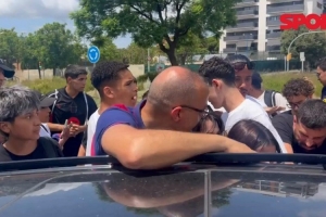 眾多球迷在巴薩基地外等待球員,孔德停留超過10分鐘,耐心地為球迷簽名,與他們合影。