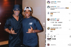 體育資訊7月26日訊 恩德里克更新社媒動(dòng)態(tài),曬出與巴西傳奇球星羅納爾迪尼奧的合照。