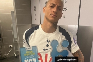 賽后,理查利森在個(gè)人社媒曬了他領(lǐng)取全場(chǎng)最佳球員的照片,并標(biāo)記了阿森納后衛(wèi)加布里埃爾。隨后,加布里埃爾更新社媒,曬出自己3次拿到英超北倫敦德比全場(chǎng)最佳的獎(jiǎng)杯予以回?fù)?,他也艾特了理查利森?/p>