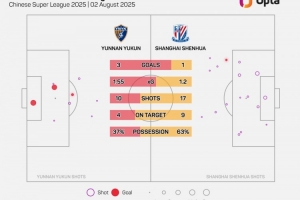 上海申花足球俱樂部在對(duì)陣云南玉昆足球俱樂部的上半場比賽中一共有17次射門,其中9次射正,這兩項(xiàng)數(shù)據(jù)都創(chuàng)造自2012年Opta采集相關(guān)數(shù)據(jù)以來,球隊(duì)單場中超上半場的紀(jì)錄??窆?/p>