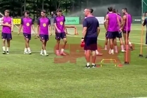 體育資訊8月3日訊 《每日體育報(bào)》報(bào)道,巴薩在訓(xùn)練中用灑水器降溫。