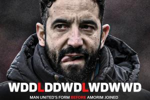 阿莫林接手后:曼聯(lián)15場5勝3平7負