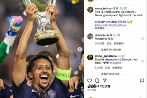 賽后,巴黎隊(duì)長(zhǎng)馬爾基尼奧斯更新社媒曬出捧杯歡慶照片,并配文寫(xiě)道:這就是巴黎圣日耳曼,永不放棄堅(jiān)持戰(zhàn)斗到最后!冠軍,我的兄弟 ????