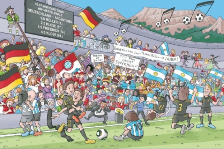 《托馬斯-穆勒:我的隱藏物品書》于8月初出版,共16頁,收錄了穆勒職業(yè)生涯中8個精彩時刻的圖畫版本,讀者在閱讀時可以在圖畫中尋找數(shù)量極多的信息和彩蛋。這本書旨在探索、紀(jì)念,以及最重要的——帶來歡笑。