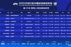 體育資訊8月15日訊 中超官方公布第21輪裁判安排,艾堃執(zhí)法浙江隊vs申花,本輪聯(lián)賽無外籍裁判執(zhí)法。